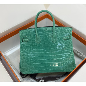특가 13,500위안 플래티늄 25CM 제국의 녹색 수제 가방입니다. 수입 고광택 미주 악어 복부 가죽으로 제작되었으며, 3마리 물고기 대칭 배치로 재단하였습니다. 이탈리아 수입 양가죽 안감을 사용하고 완전 수제 봉제로 제작되었습니다.