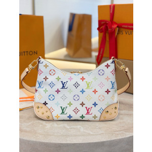 최고급 정품 수준 제품으로 전체 정품 패키지 구성입니다. 사이즈는 29x16x9.5cm이며 화이트 컬러입니다. 무라카미 다카시 컬래버레이션 시리즈 볼로뉴 핸드백으로 클래식한 모노그램 캔버스 소재를 사용했습니다. 더블 지퍼와 아이폰 12 프로를 수납할 수 있는 넓은 내부 포켓이 있습니다. 스트랩으로 숄더백과 크로스백 모두 가능하며, 스트랩을 분리하면 소형 체인백이나 클러치백으로도 사용할 수 있습니다.