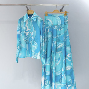 Pucci 블루 롱 플리츠 스커트+0원