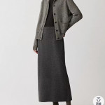 신상품 M5142 모델 소헤 26년 봄여름 컬렉션 60수 양모 중장 기장 뒤트임 반치마. 16게이지 양면 골지(리브 인터록) 편직 기법으로 제작. M/L/XL 사이즈 현품 출고 가능. 지넷 모델 착용 이미지 참고