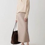 소헤 양모 미디 슬릿 스커트