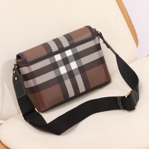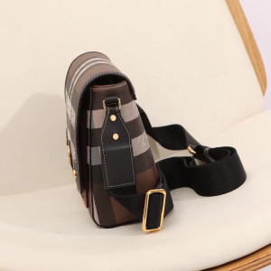 신상품 Note 사선 크로스백이 입고되었습니다! 입자 무늬 가죽과 빈티지 복고풍 체크 패턴으로 제작되었으며, 로고가 새겨진 스냅 버튼이 장착되어 있습니다. 분리 가능한 넓은 스트랩이 포함되어 있어 어깨 가방이나 클러치백으로 자유롭게 변환 가능합니다. (25 x 8.5 x 18cm) 브라운 체크 패턴